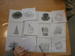 vertelden bij 3 prenten en mochten die dan in de juiste volgorde plaatsen zodat