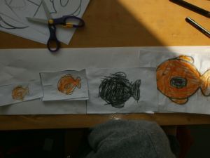 Aan de werktafel hebben we geknipt en gekleefd : van klein naar groot.