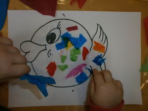 Donderdag deden we verder met ons snipperwerkje en vrijdag zijn we gestart met het maken van een mobiel.