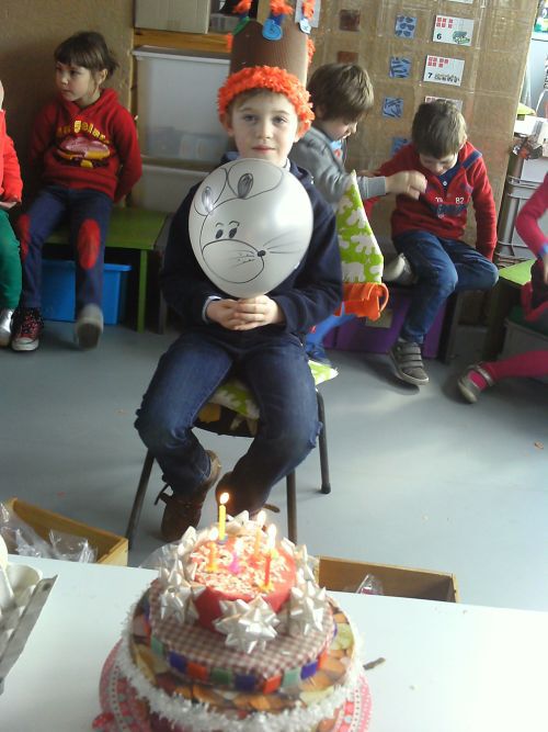 Tussen al het "feesten" door vierden we ook de verjaardag van de jongste kleuter van onze klas: Remy.