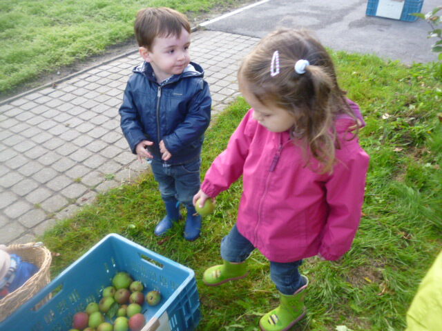 Deze week werkten we rond het thema de appel en de peer! Maandag gingen we op zoek naar de appel en perenboom op school en aten we een appel Dinsdag reden we met de bus naar de lochting in Izegem waar we appelen mochten plukken Woensdag kijken we naar een verhaal van Raaf en Fred die naar de boomgaard gingen Donderdag maakten we zelf rabarberappelmoes en speelden het spel de boomgaard samen met juf Delphine Vrijdag schilderen we een appel en een peer In de klas hebben we ook een fruitwinkelte, heel leuk ...
