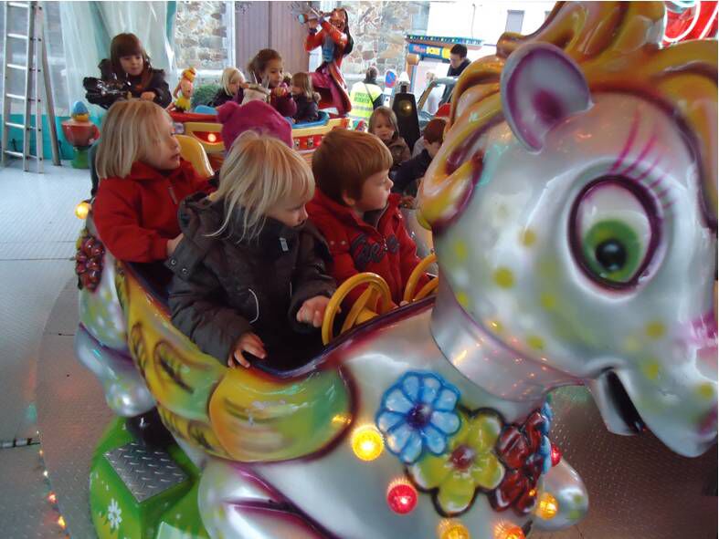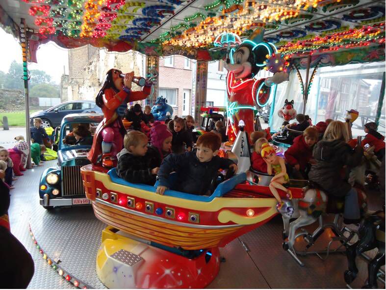 Om het thema af te sluiten gingen we naar de kermis. Wat fijn .... 3 ritjes op de draaimolen.