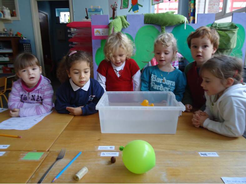Eendjes blijven drijven op het water ... kunnen alle spullen drijven ? De kleuters probeerden dit uit ... oeps ! Sommige kunnen drijven andere zinken. Joepie ! Vissen in de klas ! Feest in de klas ! Femke en Sem werden beiden 4 jaar. Hip hip hip hoeraaa !