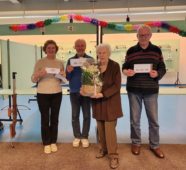 Schepen Vansina had ons toegezegd om te komen zien maar andere verplichtingen verhinderden dit. Schepen van Sport was wel aanwezig en nam de prijsuitreiking voor zijn rekening. Ook was hij zeer nieuwsgierig naar het verloop van de schieting en over de wapens, een nieuwe wereld ging voor de Schepen open.