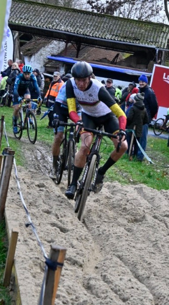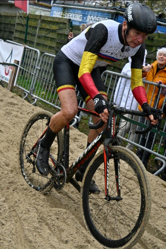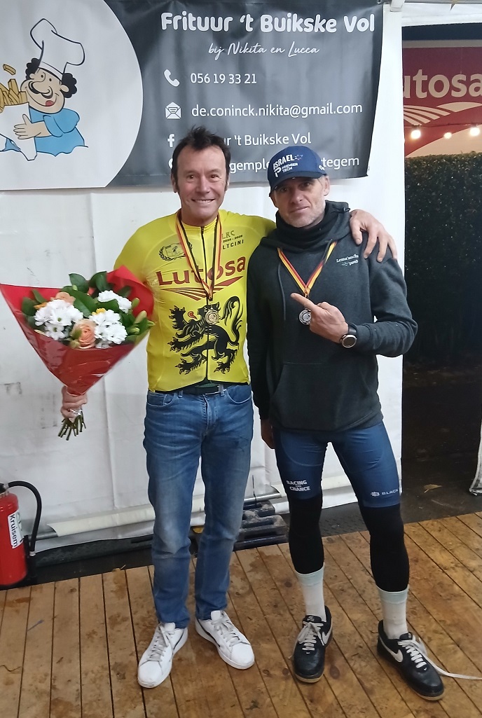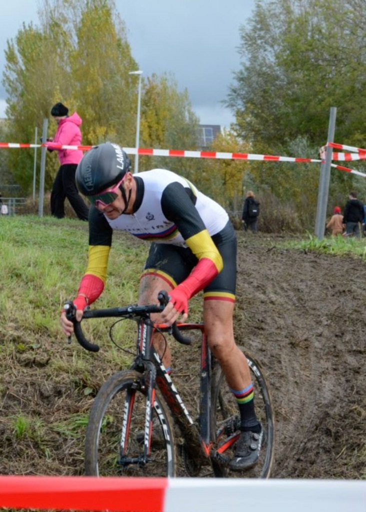 Reeds het derde jaar op rij worden de Belgische veldritkampioenschappen amateurs/masters in het Maldegemse park georganiseerd. Drijvende kracht is ex renner Erwin Vankerschaever en zijn team. Dat het kenners zijn zie je al bij de eerste oogopslag op de omloop. Veel beter dan de jaarlijkse parkcross in februari voor de eliterenners als je het ons vraagt. Als uittredende kampioen was ik de voorbije 10 dagen niet van het parcours af te houden. Ik kende iedere centimeter uit mn hoofd. In augustus won ik de Belgische tricolore ook al op de weg bij Belgian Cycling, sindsdien lag de focus dus enkel nog op vandaag. Ik begon aan een streng dieet en verloor nog eens 7kg extra. Alles verliep volgens plan en al die maanden bleef ik de overwinningen maar aan elkaar rijven. Ziek worden was mn enige schrik, vandaar dat ik de laatste weken niet meer zonder een mondmasker aan handschoenen aan te zien was in het straatbeeld. Het lukte, ik stond fris als een hoentje aan de start vanmorgen om 10u30 voor de start van mijn categorie 60j-65j. Mijn voornaamste tegenstanders zijn al 15j lang dezelfde toppers zijnde Antwerps kampioen Guido Verhaegen ( 11x Belgisch kampioen) en Limburgs kampioen Dirk Mertens ( 1 xBelgisch kampioen). Groot was mijn verbazing toen ik reeds in de eerste meters opmerkte dat het niet vlot liep. Ik probeerde kopstarter Verhaegen te remonteren net voor de eerste hindernis maar mn benen ontploften toen al. Paniek in mn hoofd. Ik probeerde rustig te blijven en merkte op dat Guido zich niet zo goed thuisvoelde op de zeer technische omloop. Toen ik de kans kreeg nam ik de koppositie over in de wedstrijd. Maar ik hoorde dat er een renner in mn zog bleef hangen, niemand minder dan Limburger Mertens die twee jaar geleden hier ook kampioen werd nadat ik opgaf met koorts. Ik kreeg al het angstzweet want halverwege de wedstrijd nam Mertens zelf de leiding over en moest ik toch effen slikken. De laatste maanden was ik out-standing en vandaag had ik plots een mindere dag. Ik dacht dat de benen wel zouden loskomen maar dit was niet het geval. Toch nam ik de leiding terug over zodra ik een foutje opmerkte van mn concurrent. Plots had ik een kloof, ik geloofde mn ogen niet en met veel pijn probeerde ik het uit te bouwen. Op twee ronden van het einde toen ik 20" voorsprong had op mn enige tegenstrever voor de titel kwam ik ten val in de lange zandbak net voor de aankomst. Ik moest mn fiets uit de diepe zandgleuven sleuren en mn weg verder zetten. Toen ik achter mij keer reed Mertens op ...5". Ik bleef druk zetten en een perfecte ronde leverden me terug die rustgevende 20" voorsprong. De laatste ronde was het vooral zaak om geen fouten te maken, ik deed dit en kon zodoende mn 8 ste tricolore bij Belgian Cycling ophalen. Mertens was 2e op 25", Verhaegen 1'58 vervolledigde het podium. Gelukkig had ik deze keer geen dopingcontrole en kon ik kijken naar de wedstrijd van mn zoon Laudelino die na de podiumceremonie van start moest gaan. Laudelino had op papier geen schijn van kans tegen Jens Gys, maar dan kennen ze de Lammie's nog niet goed. Lammie junior heeft al een Belgische driekleur behaald bij Belgian Cycling en weet dus wel hoe naar een BK te pieken. 'Laudo' nam een kopstart in zijn age-groep en vloog door de technische passages al ging zn leven ervan af. Half wedstrijd telde ik al 40" voorsprong op een met zichzelf vechtende Jens Gys. Laudelino bleef onder de vele aanmoediging vol doorgaan en behaalde met tranen in zn ogen een tweede Belgische driekleur bij den groten bond. Ik kon het ook niet droog houden, wat ben ik trots op zijn doorzettingsvermogen en zn techniek die hij etaleerd op zo'n omloop. Niemand kwam vandaag ook maar in zijn zog. De Lammie's boven vandaag in Maldegem. Ikzelf won al voor de 16e keer een parkcross in Maldegem, Laudelino 3 keer, dus 19 keer Lammens !!!! ON-GE-LO-FE-LIJK. Nu ik toch de cijfers bovenhaal..........het was mn 35e overwinning dit jaar en mn 22e tricolore trui uit mn carriere.