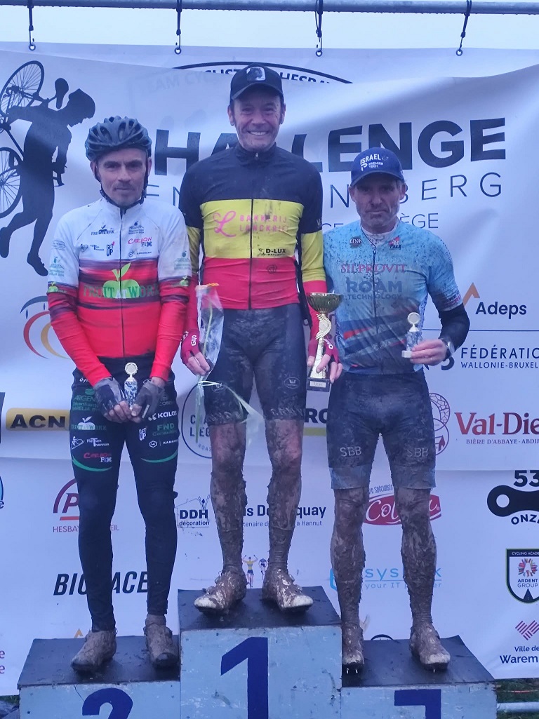 Georges Hauterat was de favoriet vandaag voor de Luikse titel, hij opende sterk omdat hij zag dat ik achteraan het pak moest starten omdat ik dit seizoen enkel nog maar Ardooie had gereden. Reeds na enkele minuten begon Georges renners die voor ons gestart waren op te rapen, ik moest dus zorgen dat ik niet te veel tijd verloor op de vele single tracks. Het lukte bewonderenswaardig heel makkelijk, ik had een superdag vandaag. Samen reden we elk om beurten een rondje aan de leiding op de toch wel lichte klimcross. Hauterat vertrouwde het niet en wou het niet tot een sprint laten komen, hij probeerde me los te gooien maar slaagde er niet in. De laatste twee ronden nam ik taktisch op en nestelde me netjes in zijn wiel. Ik maakte hem daardoor blijkbaar zenuwachtig want op 800m van de aankomst kwam hij ten val in een haarscherpe bocht, ik aarzelde niet en reed naar mn tweede overwinning op twee dagen. De 60 bonuspunten waren een leuk extraatje. Limburgs kampioen Dirk Mertens kwam nooit in het stuk voor maar behaalde alsnog wel een knappe derde podiumplaats voor de neus van Christophe Logier die ook de verre verplaatsing had gemaakt.