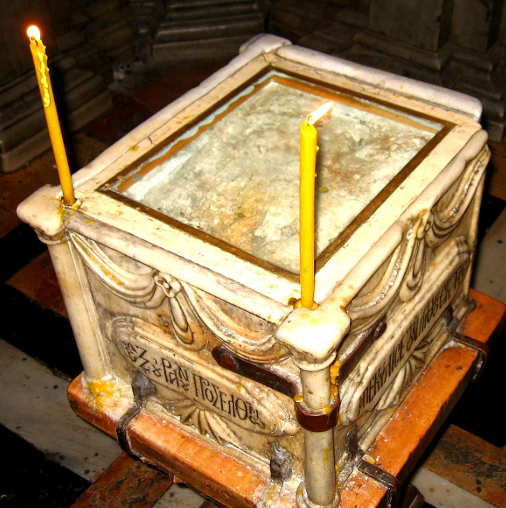 het Kruis opheffen en het laten vallen in het gat dat ze hadden gegraven. U,