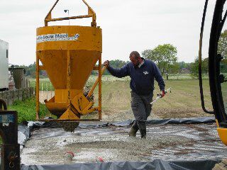Start dus met uitpassen en meten en dan de funderingsvoet, hiervoor zijn sleuven van 60cm breed en 80cm diep uitgegraven en volgestort met beton, morgen metsen ze de fundering verder omhoog.