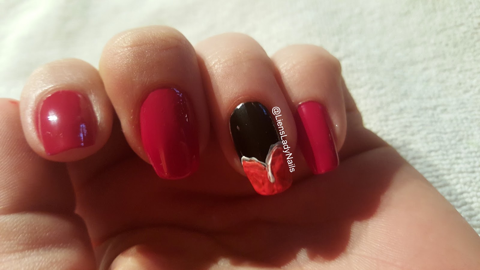 nu hetzelfde met de witte nagel maar gebruik rode nagellak en doe er