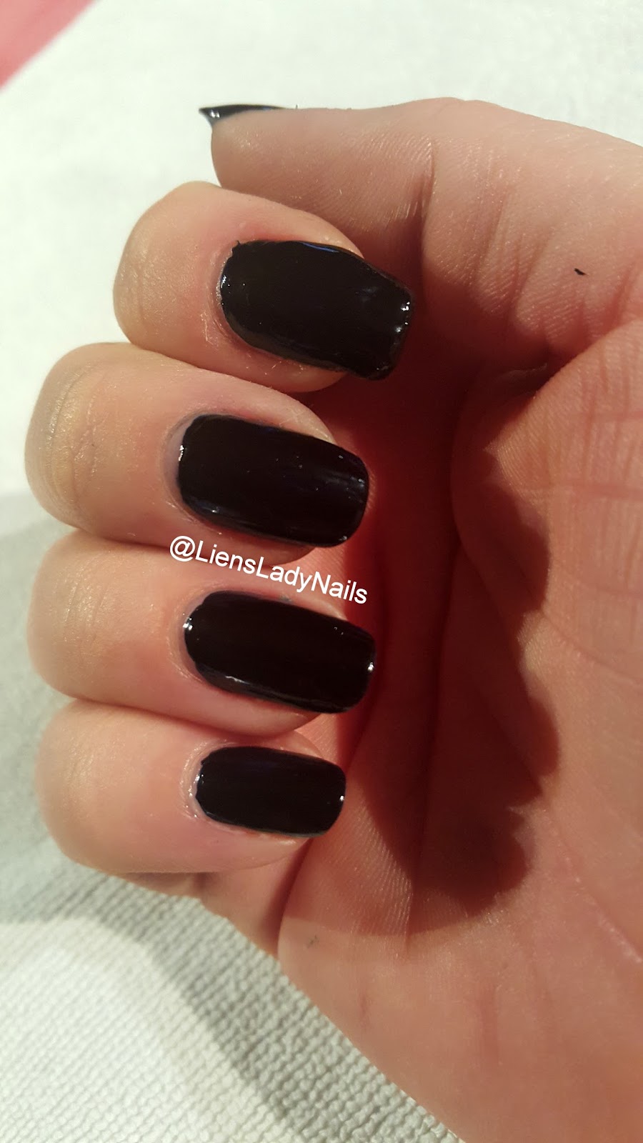 helemaal droog is, lak je al je nagels in een donkere kleur. Ik koos