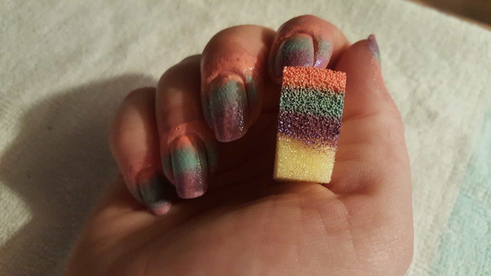 hoeveel en welke kleurtjes je wil en spons de op je nagels. Ga er