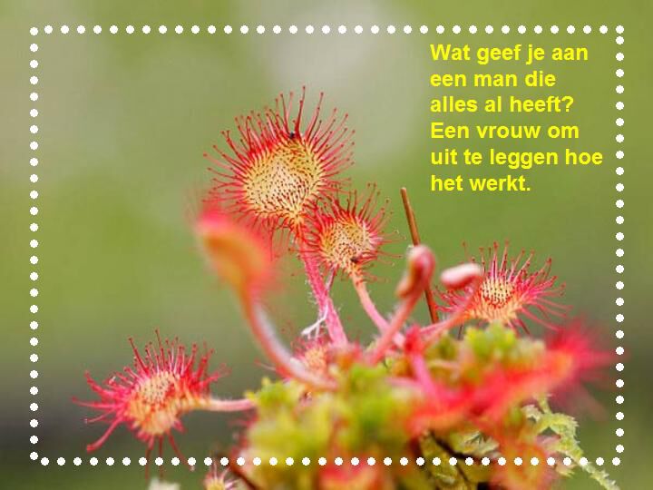 zowel over de man als over de vrouw. Let wel, t'is allemaal met een knipoog gezegd, de mens mag toch ook nog wel wat lachen he want er is al oorlog genoeg in de wereld. Geniet van het weekend en tot de volgende