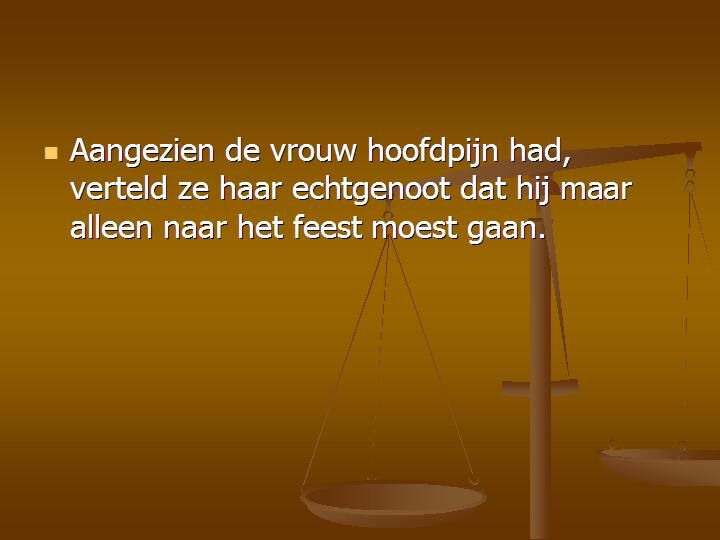 "Ja maar uw moeder kon vorige nacht niet slapen, zij ging een slaapmiddel vragen aan uw vrouw, die was met uw beste vriend aan het vogelen en is dood gevallen van het verschieten."