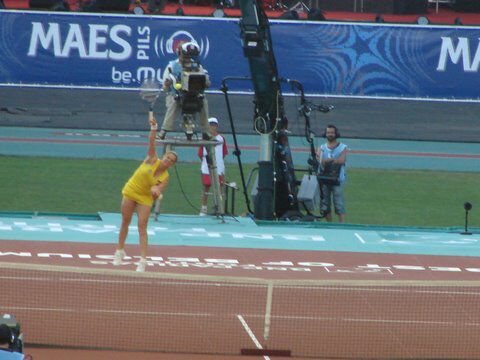 'Ja natuurlijk, ik heb de standaard nodig om mijn Canon op te laten rusten. Hij is veel te groot voor mij om vast te houden wil ik goed kunnen schieten 'Mevrouw? Mevrouw? . Goeie God, ze is flauwgevallen! ! Zou ik iets verkeerds gezegd hebben?'