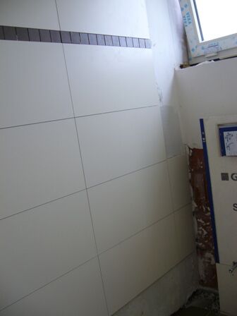 De vloerder was ook nog eens bezig, ik denk dat'm boven de badkamertegels verder aan het plaatsen was.