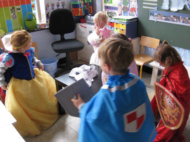 Met de werken aan de speelplaats lijkt onze klas wel een eilandje. We waren volop aan het fantaseren en bedachten dat we in 'kasteel Lollifant' verblijven,... vandaar dat wij vorige week werkten rond ridders, prinsessen en kastelen. Het was een succes hoor, want wat waren de kleuters blij dat ze zich konden verkleden als ridder of prinses. We hebben leuk en hard gewerkt aan onze knutselwerkjes en tekeningen (we worden echte tekentalenten!) Je kan onze knutselwerkjes rond verkeer en ridders, prinsessen en kastelen komen bewonderen tijdens de lentehappening (8mei).