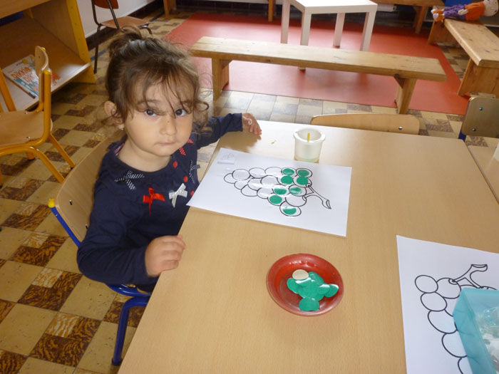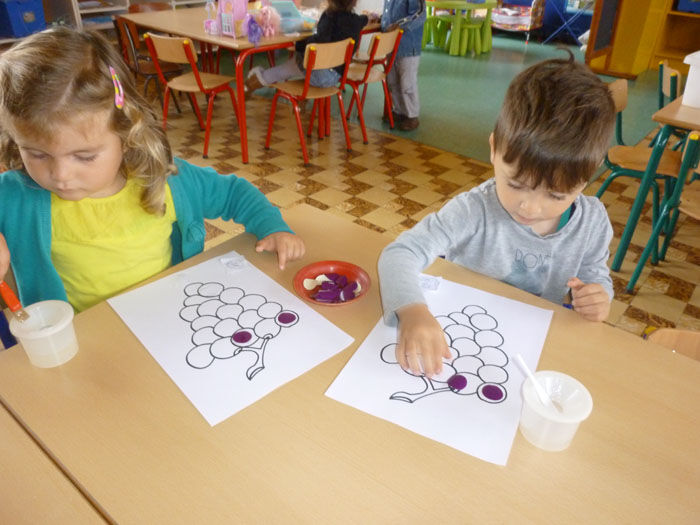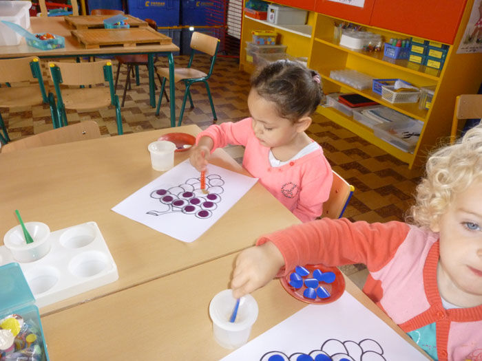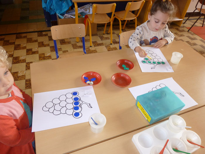1-1 relatie: in elk druifje 1 bolletje plakken