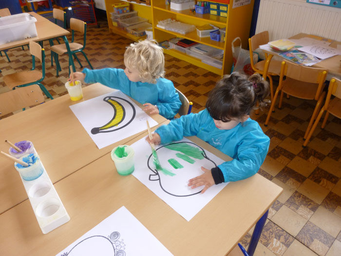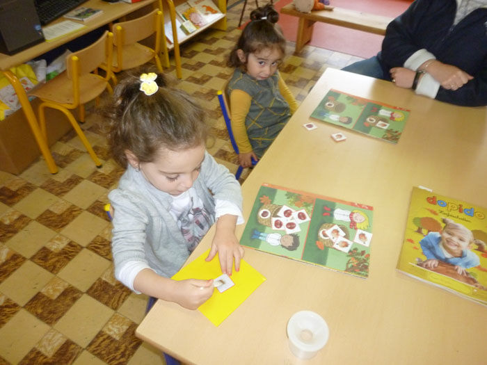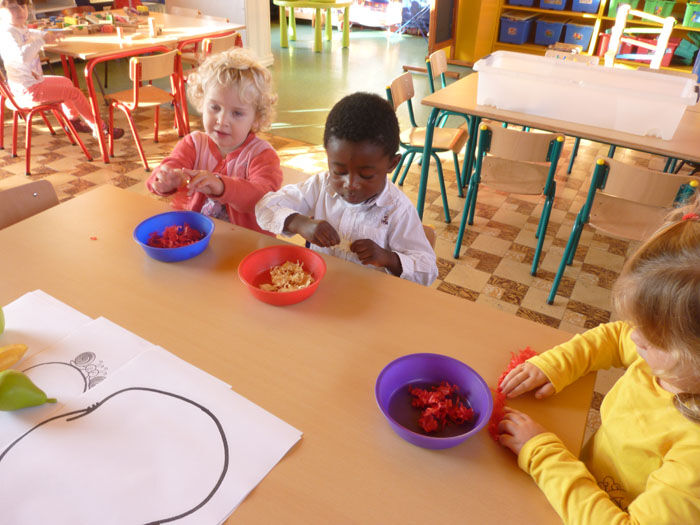 Daarna mochten we de papiertjes in een fruitje plakken.