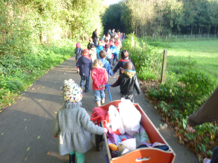 Wandeling naar de chiro, zouden we hier kastanjes vinden?