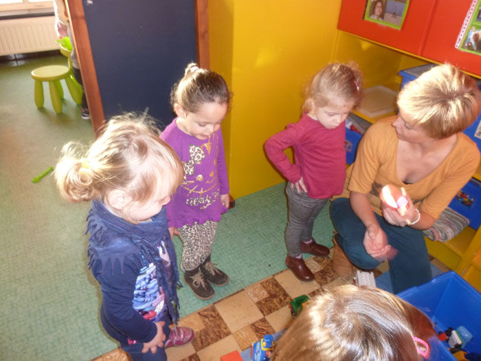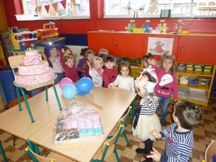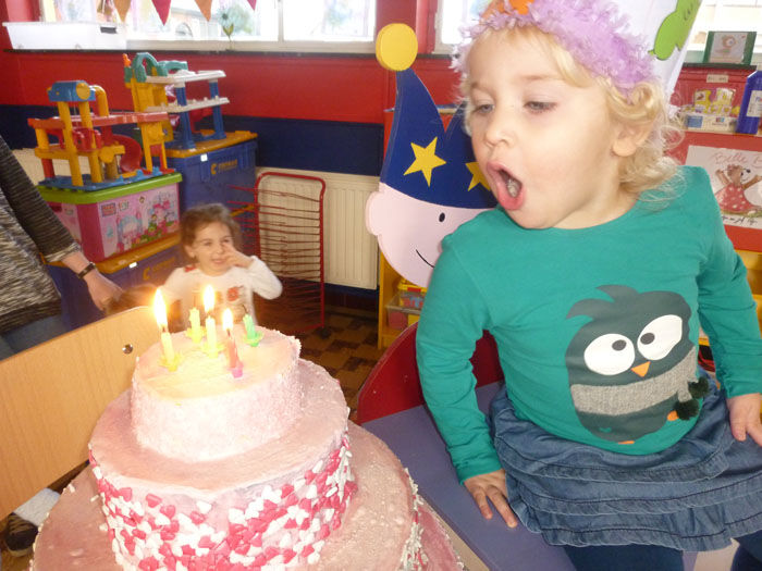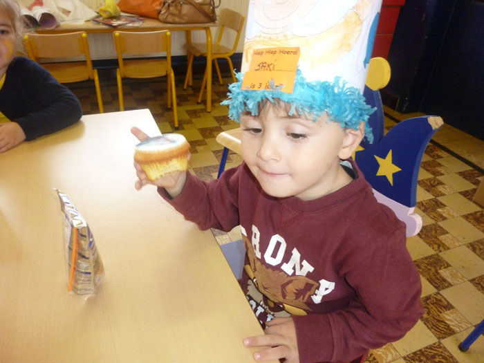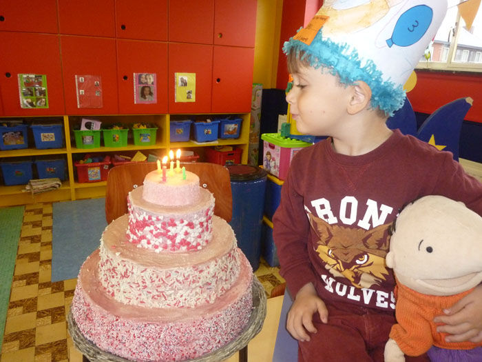 De eerste jarige in onze klas, wat vonden de kleuters dit fijn.