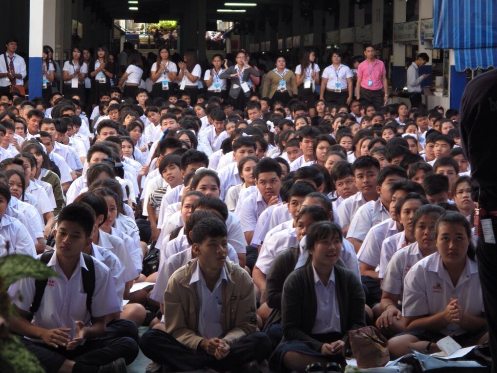 Gisteren morgen hoorden we ambiance, muziek, kreten en gezangen in de middelbare school hier vlak in de buurt. Wij natuurlijk nieuwsgierig een kijkje gaan nemen aan de poort. En we werden uitgenodigd om binnen te komen door enkele fiere leerkrachten. Iedereen zong uit volle borst . Sommigen oefenden als cheer leaders. Ze hadden er blijkbaar lol in. Ze oefenden voor een schoolmanifestatie volgende vrijdag. Een buitenkansje was dat voor ons.