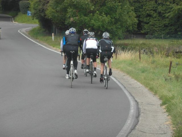 Vanuit Averbode ging ht de eerste dag richting Val-de-Poix - Saint-Hubert. Alles verliep vlekkeloos maar helaas had de routeplanner er niets beter op gevonden om de groep door het provinciaal domein van Mirwart te sturen op weg naar Val de Poix, de eindbestemming. En de fietsers hebben het geweten. Het werd een eindeloze strijd tegen een vals plat en lichte hellingen.