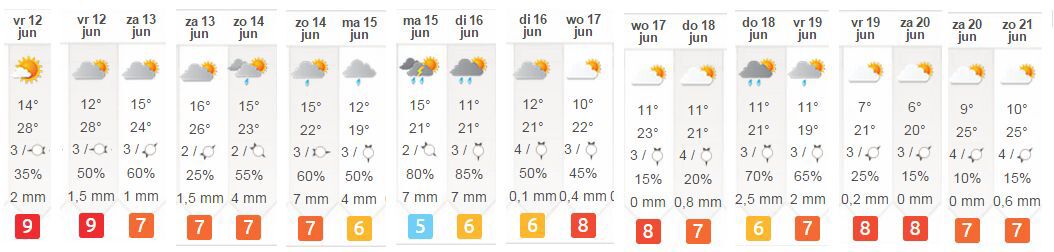 Klik op de afbeelding om de link te volgen In tegenstelling tot de weersvoorspellingen van begin deze week waar we de komende 14 dagen op één dag na dageljks getrakteerd zouden worden op een regenbui lijkt het weer volledig omgeslagen.