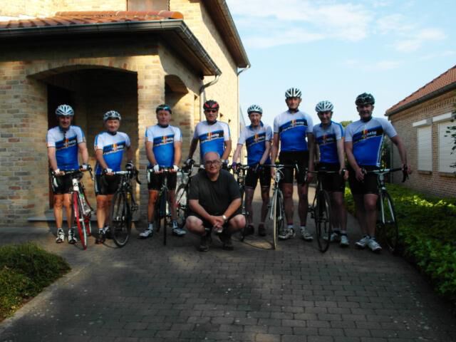 Het verdere verloop van de namiddag ging over de heuvelachtige wegen in en om de streek van Verdun. Waar we dus in bijna elk dorp dat we doorkruisten met onze neus op WO I gedrukt werden. Herinneringsslagvelden, monumenten, musea, etc... In overvloed. Na een laatste stop in Le Petit Monthairon op zo’n 20 km van Lacroix sur Meuse ben ik da doorgereden. Ik was nog bezig met de zakken aan het uitladen toen de renners al arriveerden om iets voor 5. Na de recovery drink ging iedereen zijn fiets kuisen en een douche nemen. Waarna we samen, alvorens te gaan eten, een verfrissend drankje genomen hebben.