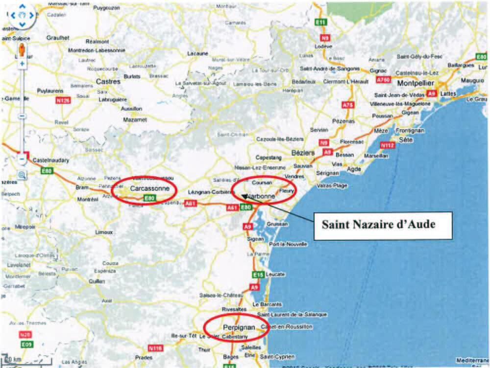 Op de tweede foto kan je zien dat ons huis aan de rand van het dorpje ligt, rustig, hoog en droog (Maison Matisse ligt namelijk op een heuvel) Onder de naam Saint Nazaire d'Aude staat er "San Nazari". San Nazari is de Spaanse vertaling voor Saint Nazaire d'Aude. De Spaanse invloed is meer en meer voelbaar in onze streek (bv. siësta, lokale dialecten,...)