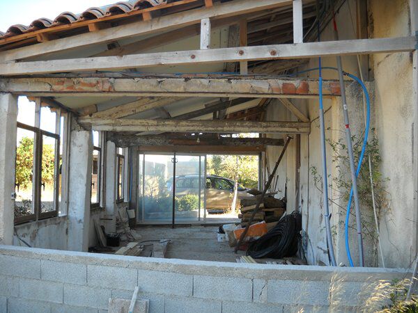 Foto 7: de veranda. Deze wordt later omgebouwd tot een binnen ontbijtruimte / ruimte voor vuilbakken / wasplaats