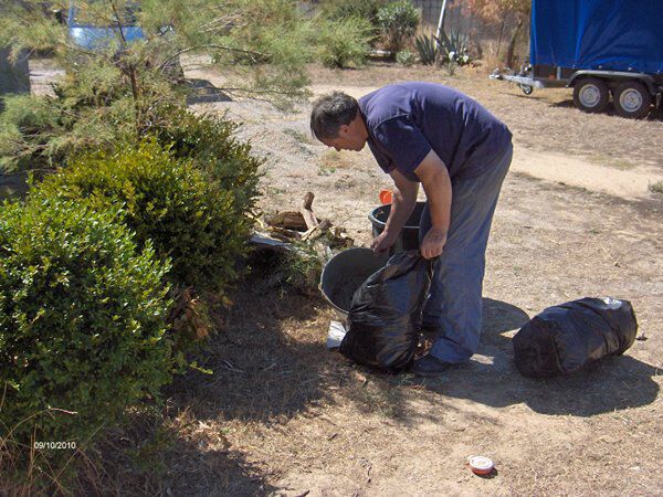 Op foto's 3 + 4 kan je zien hoeveel afval er nog uit de kelder gekomen is. Hopelijk komen er nog foto's van hoe de kelder was voor deze een opruimbeurt kreeg. De pomp van het zwembad is ondertussen stuk (deze was sowieso niet krachtig genoeg) en dit was de kans om de sokkel waarop deze stond eens te vernieuwen. Toen we de pomp van de sokkel kregen zagen we dat het hoog tijd was deze te vernieuwen, m.a.w hij was volledig verrot. Het zand is ook verwijderd uit de pomp om deze te kunnen verplaatsen.