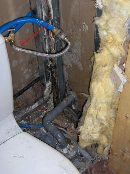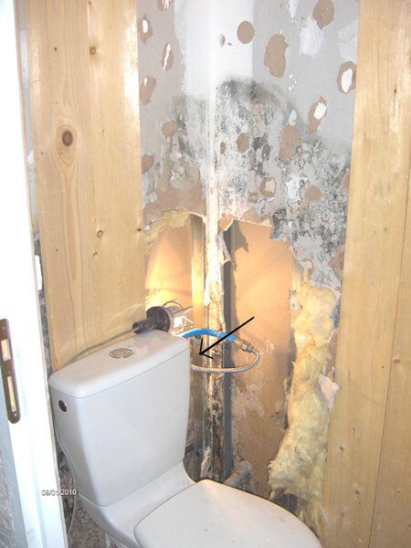 Met nog heel veel werk voor de boeg worden er toch kleine werken gedaan tijdens een van de momenten dat we op "vakantie" gaan. Zo zijn er recent 2 lekken gemaakt. Wel, in het toilet (zie foto 1 + 2) kan je eigenlijk niet spreken van een lek maar van een echte fontein. Op foto is natuurlijk niet te zien wat er gebeurde tijdens het doortrekken van het toilet, maar videobeelden spreken voor zich. Gevolg was dat heel de muur van het toilet ondertussen zo vochtig was dat het water zelfs tot in de kelder en kamer ernaast liep. Hoog tijd dus voor SOS Jacques Van de tweede lek zijn er geen fotos, dit was enkel een lekkende kraan in de keuken.