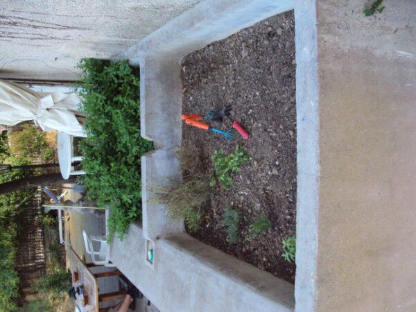 De voorbije dagen hebben we onze kruidentuin ook nog wat aangepland. Aan de zijkant staat een lavoir, een soort bad waar vroeger de kleding in gewassen werd. Omdat ik dit een super toffe lokatie vond om mijn kruiden in te planten hebben we die dus omgevormd tot moestuin :). Momenteel staat er reeds veeeel munt, maar ook basilicum, rosemarijn, thijm, laurier, bieslook, koriander en citroenmelisse of citronella. (foto 1)