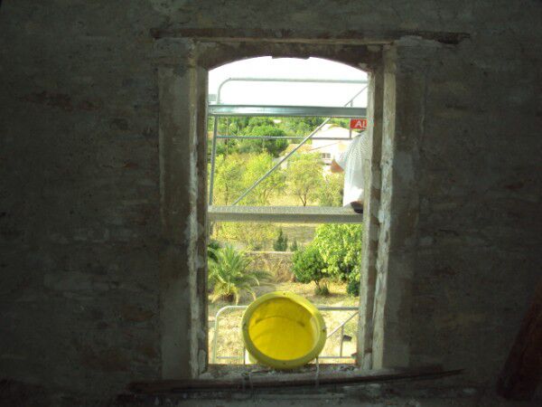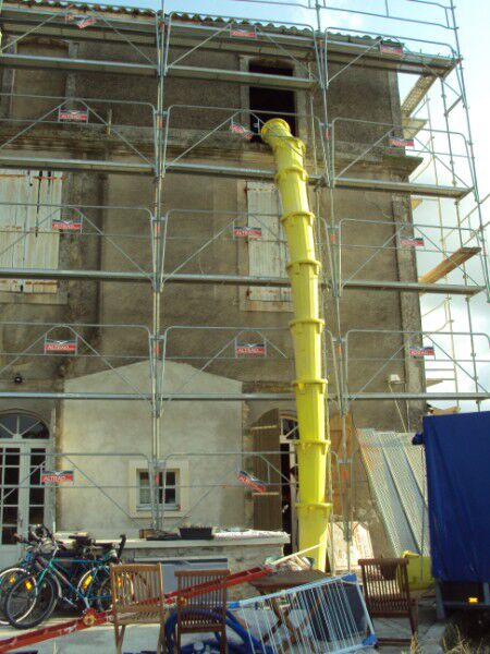 We hebben ook nog een afvalbuis geplaatst omdat er nog veel puin en afval ligt op het tweede verdiep. Dit was dus de kans om er makkelijk vanaf te geraken. Op de 2de verdieping zijn er ook enkele ramen die dichtgemetst zijn. Omdat we er nu makkelijk aankunnen hebben we er al eentje terug open gemaakt.
