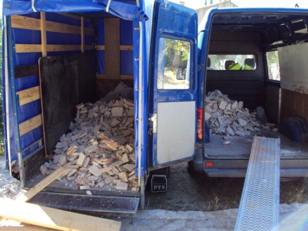 Ik kan jullie verzekeren dat verschillende hondereden kilo's waren :p want de remorque kan 2 ton dragen en we hebben zelfs de camionnette moeten inschakelen ;).