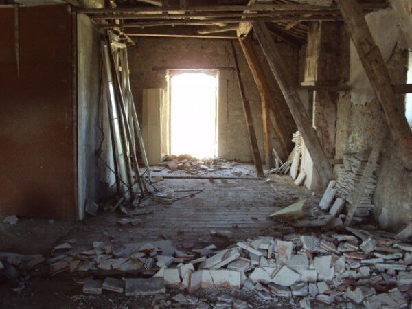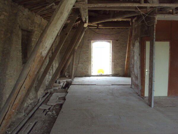 Er is heel wat veranderd op de zolder. Al het afval en puin is weggedragen naar het containerpark en we hebben hem ineens ook een kuisbeurt (gekeerd met de borstel) gegeven. Op de plancher lag er een laag (stof, vogelkaka, takken, stenen,...) van wel enkele centimeters. Nu hebben we eindelijk een zicht op de grootte van deze 2de verdieping.
