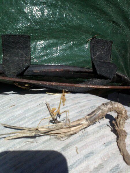 Omdat het hier nog altijd volop zomer is denk ik dat de natuur ook een beetje verward is. Het is al lang geleden dat ik nog zoveel verschillende soorten vlinders gezien heb, hagedissen die de zon opzoeken, een beestje op bruno zijn broek dat ik nog nooit gezien heb (zie foto onderaan) en ook nog een zeer raar beestje (trok beetje op een wandelende tak) dat opeens in de camionette zat... (ook foto hieronder). Is dit misschien omdat het hier nog altijd 30° is?