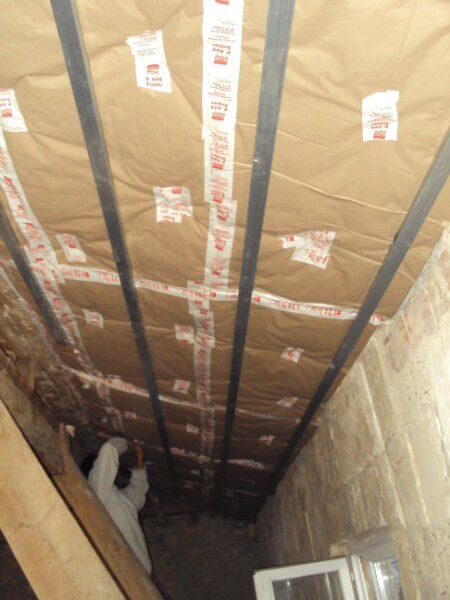 De afgelopen dagen hebben we willen verder doen aan het plaatsen van onze isolatie maar daar hebben we enkele ongemakken gekend. We gaan 2 lagen isolatie leggen en hadden daarvoor 1 dezelfde soort voorzien, namelijk isolatie op rol (die vrij flexibel is). Voor de eerste laag (tussen de balken) is deze ideaal maar voor de 2de laag is deze veel te flexibel. We moesten dus op zoek naar een alternatief dat ook nog eens in ons budget past. We hebben daardoor dus wat tijd verloren maar ondertussen hebben we de perfecte soort gevonden (isolatie op platen) en kunnen we verder. Vandaag hebben we al een stuk van het dak 2 lagen kunnen geven en ook direct de metalen latten geplaatst voor het plafond aan te bevestigen. We moeten nu enkel nog een volwaardig dampscherm plaatsen.