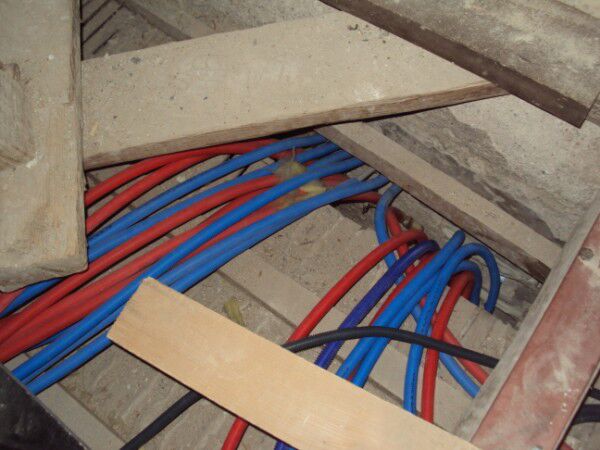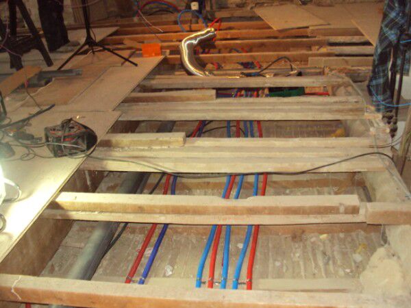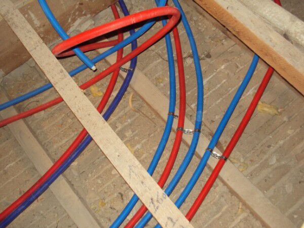 Jacques heeft ondertussen alle chauffageleidingen gelegd en aangekoppeld alsook de waterleidingen van de eerste badkamer. Nu is er enkel nog de 2de badkamer aan te koppelen en we kunnen verder aan de volgende fase (wat deze zal zijn weten we nog niet... misschien het dak van de hangar, misschien het afwerken van de vloer op de 2de verdieping, dat zal afhangen van het moment zelf.)
