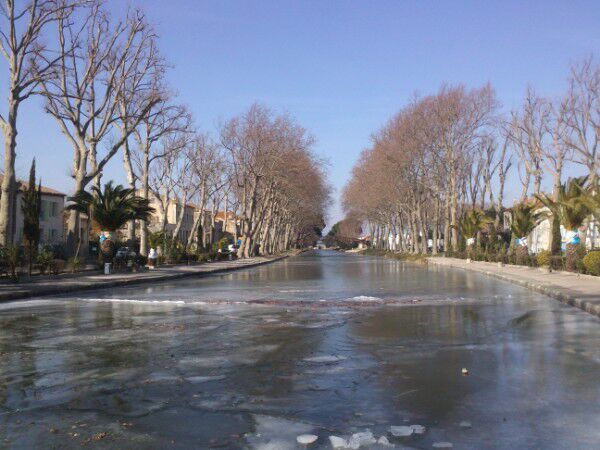 Sinds enkele dagen zijn we in de ban van een echte winterprik. In vergelijking met België zal het hier nog warm zijn maar het is volgens de lokale bevolking al van in de jaren 60 geleden dat het hier nog zo koud is geweest gedurende een lange periode. Le Canal du Midi is sinds enkele dagen dichtgevroren en zelfs de rivier de Aude (toch een vrij brede rivier) is bedekt met een laag ijs.