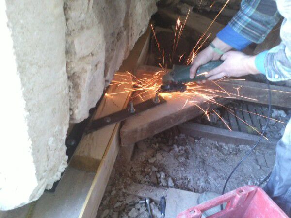Voor sommige punten moesten we een verstevigingsijzer aanbrengen dat we ook op maat hebben laten maken. Ondertussen heeft onze architect zijn goedkeuring gegeven en kunnen we gerust zijn dat we goed bezig zijn. Op de laatste foto zien jullie dat we een deel ook met beton hebben moeten opvullen.