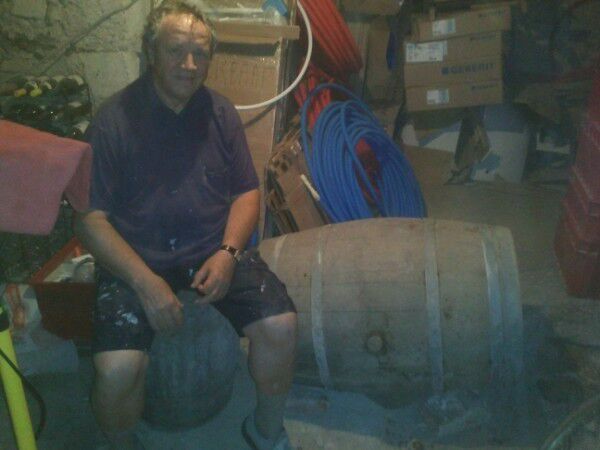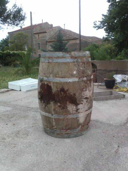 Van wijn gesproken, in onze kelder ligt al zeer lang een wijnvat. Niemand die wist wat erin zat, en of dit ook nog drinkbaar zou zijn. Om al deze twijfels weg te nemen hebben we besloten om het vat eruit te nemen en te gebruiken als decoratie voor buiten. We wisten al zeer snel dat het niet leeg was. We konden het geen 10 cm opheffen. Er zat dus niets anders op dan het leeg te maken. Ongeveer 80 liter hebben we eruit gekregen. Jammer genoeg was het geen drinkbare wijn meer maar wijnazijn. Ach ja, het was ons toch voor de buitenkant te doen en niet voor de binnenkant ;-).