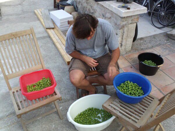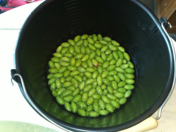 Un travail très agréable ce mois-ci était la cueillette des olives. Dans notre jardin nous avons un olivier qui produit des « lucques ». Une variété d’olives très renommée dans le Languedoc. L’olive est un fruit qui n’est pas mangeable quand on le cueille, il faut suivre un procédé de désamérisation et de rinçage. Après quelques recherches sur Internet et les bons conseils de notre voisine, je voulais donc m’y mettre et préparer moi-même mes olives. Espérons que ma « création » est réussie.