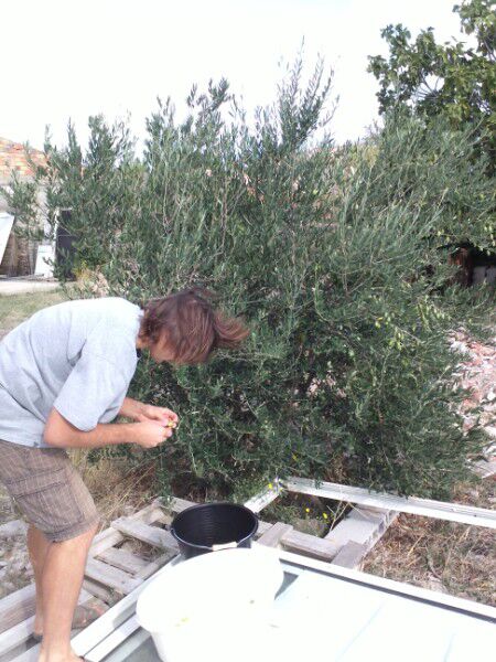 Een iets leukere gebeurtenis van deze maand was de olijvenoogst. In onze tuin hebben we een boom die de soort "Lucque" draagt. De bekendste en meest begeerde variëteit van de Languedoc. Ik wou dus onze eigen olijven maken. Olijven zijn niet eetbaar als je ze van de boom plukt. Er volgt een heel procedé van ontbitteren en reinigen. Na wat zoekwerk op het internet en wijze raad van onze buren hoop ik dat mijn "creatie" geslaagd zal zijn .