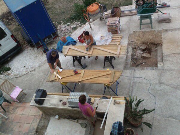 Dès que nous avions le matériel nous avons commencé avec les murs. Quelques travaux de calcul concernant les portes ont été nécessaires.