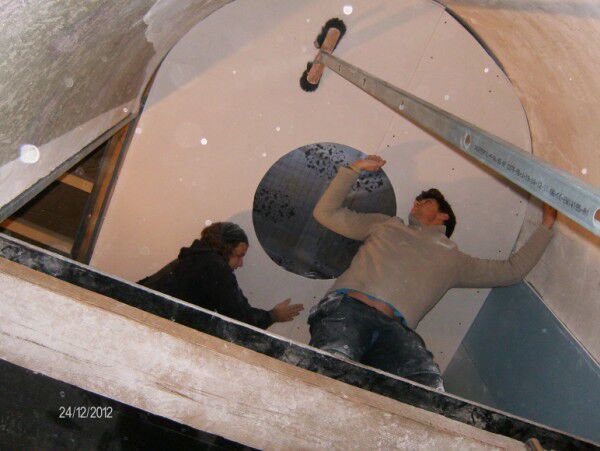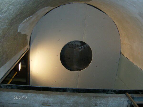 Daarna kwam de kers op de taart. Onze oeil de boeuf. Dit is een lichtkoepel in een plafond. We hebben gekozen om deze zelf te maken. Het resultaat mag er echt wel zijn (foto 4). Nu enkel nog een mooie lijst errond en we hebben een echte oeil de boeuf.