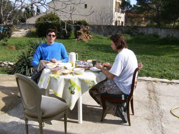 Door het goede weer hebben we, zoals gezegd, in de tuin kunnen werken maar ook buiten in't zonneke eten... zaalig ;-). (foto 8). Als afsluiter nog een leuke foto (9) van de bloemen in de tuin die ook volop van de zon genieten ;-).