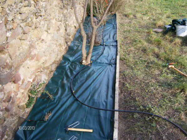 Mady en Bruno hebben gisteren en vandaag een stukje van de tuin onder handen genomen. Om niet elk jaar het onkruid te moeten uitrekken (en geloof me, 27 are tuin... ) hebben we besloten om een doek te leggen. Op foto 7 al een eerste indruk van wat in de hele tuin zal gebeuren. Daarna worden er over deze doek steentjes gelegd. Het zal er zeker proper uitzien voor de zomer ;-). Jacques is ook volop bezig met de aansluitingen van het sanitair en toevoer van water opdat we boven snel een douchke kunnen nemen in onze badkamer :p.