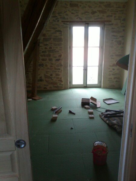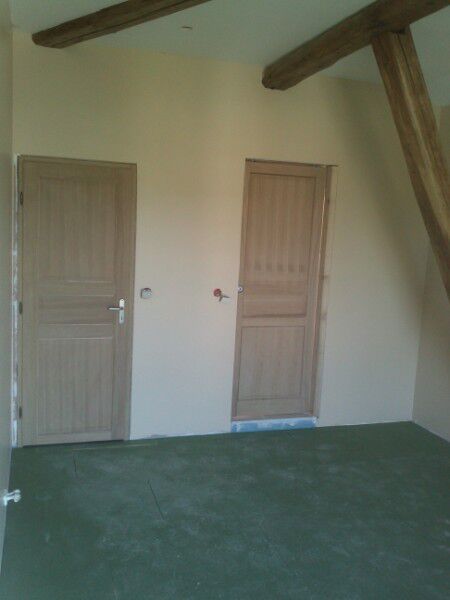 Na het schilderen van de gastenkamer zijn we begonnen aan de laatste "touch". Dit bestaat vooral uit het afwerken van de deuren met plinten. Lijkt zeer makkelijk maar het probleem is dat door omstandigheden onze opening veel te groot gemaakt was... We moesten dus op zoek naar plinten van een zekere afmeting en dikte en ook nog in hetzelfde hout. Ook dit lijkt weer geen probleem als je in België woont . We hebben hier verschillende dagen verloren omdat we nergens vonden wat we nodig hadden, en je moet hier al snel een half uur rijden om een grote winkel tegen te komen. Tot die verlossende dag dat we in de brievenbus het de publiciteit ontvingen en daar stond dat ze bij Brico Dépôt in Béziers de plinten hadden die we nodig hadden . We hebben deze plinten nog wel een beetje moeten aanpassen maar uiteindelijk staan ze. De plinten voor de vloer moeten we nog kopen maar dat zal gebeuren als onze vloerbedekking ligt. We hebben na veel overwegen gekozen om zeegras te nemen. Onze voorkeur ging naar laminaat/parket maar omdat we er zeker van willen zijn dat de mensen die onder deze kamer slapen geen geluidshinder ondervinden, hebben we even onze "ethische" principes aan de kant gezet .