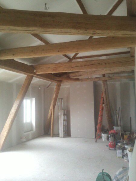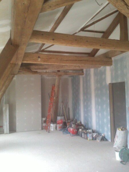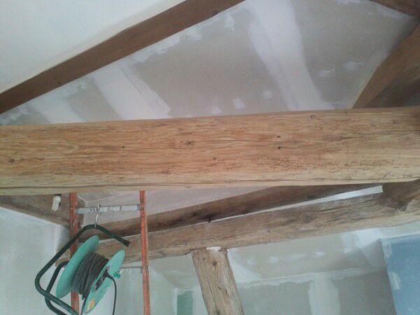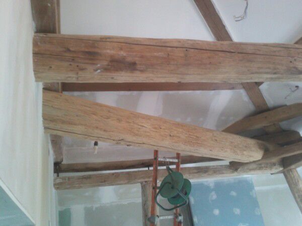 Verder zijn we ook bezig aan de laatste lastige werken in de woonplaats-eetplaats. De houten balken worden afgeschuurd en gekuist om nadien te behandelen met een kleurloos vernis. Het resultaat is hier ook zeker de moeite waard, kijk maar naar de voor-en-na foto en bepaal het zelf ;-) !! De helft is nu ongeveer gedaan. De zomer komt ook hier traag op gang. Vandaag ongeveer 25°.